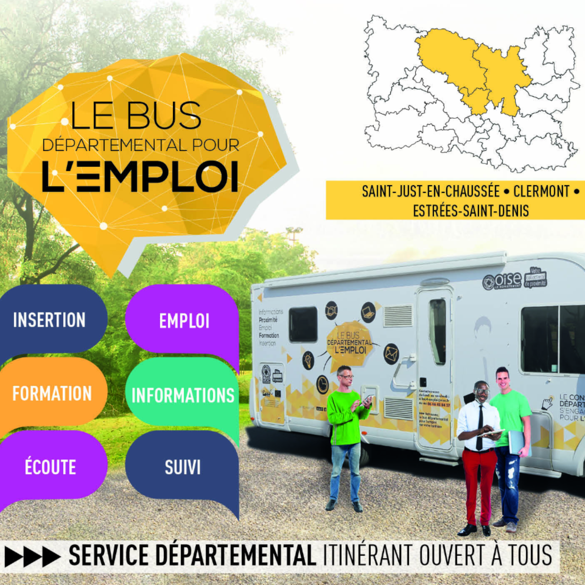 Porté par le Conseil départemental de l’Oise, le bus départemental pour l’emploi est un dispositif de proximité dont l’objectif est de compléter l’offre de service d’accès à l’emploi.